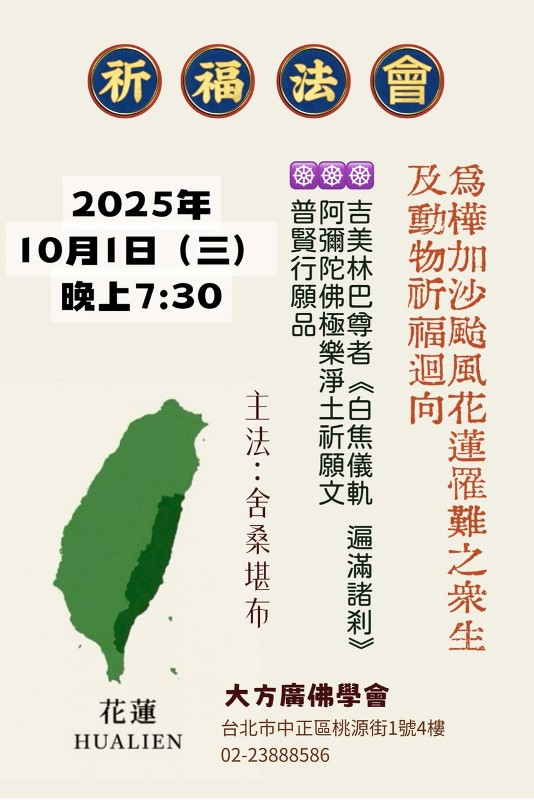為樺加沙颱風花蓮罹難之眾生及動物祈福