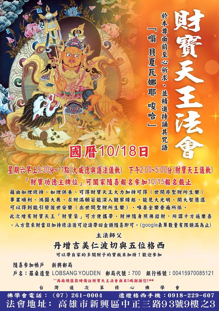 ※ 麻煩匯款時備註財寶天王法會與末5碼,謝謝您!
