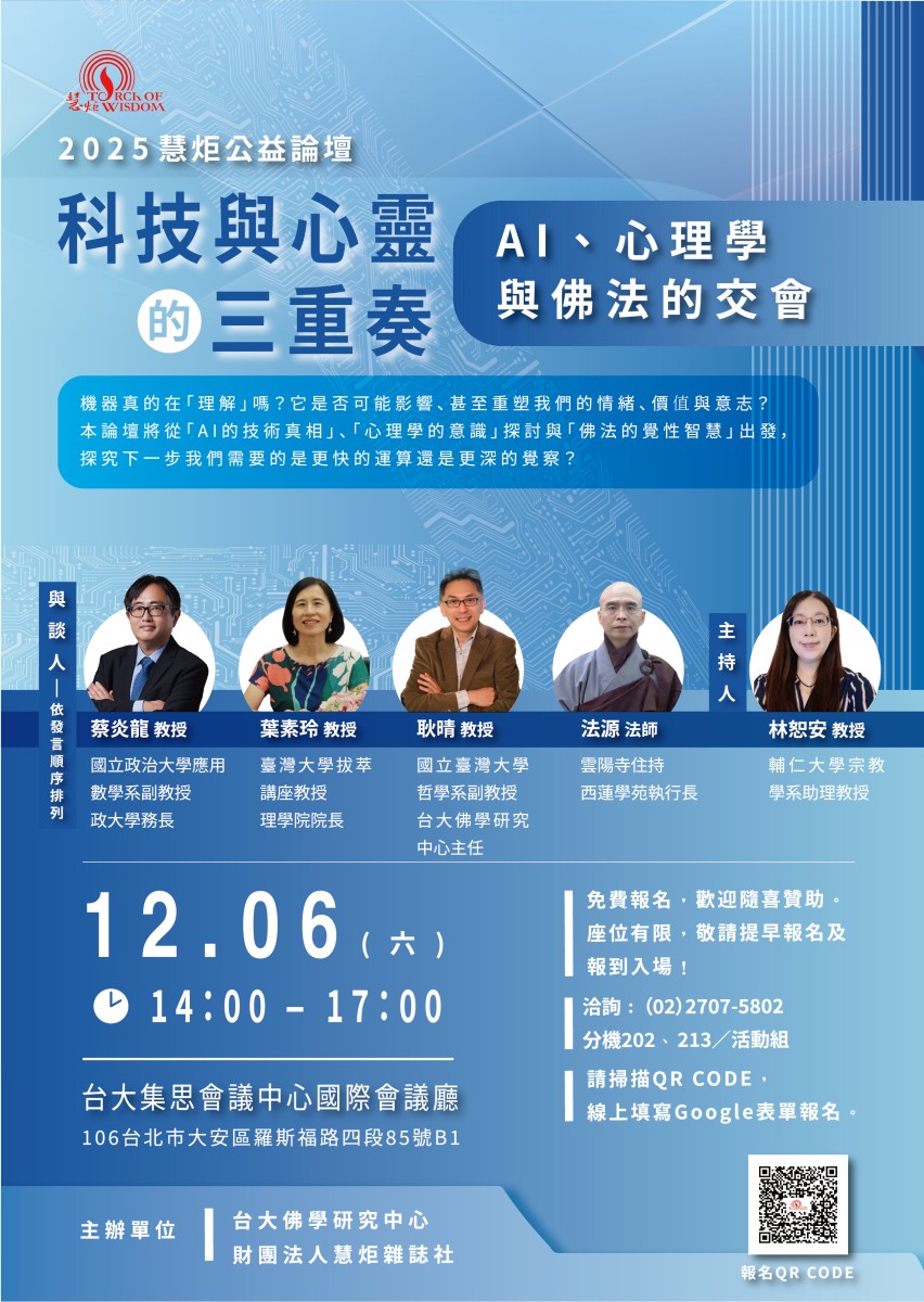【2025慧炬公益論壇】科技與心靈的三重奏:AI、心理學與佛法的交會