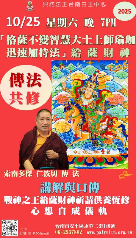「格薩不變智慧大士上師瑜珈迅速加持法」給薩財神傳法共修